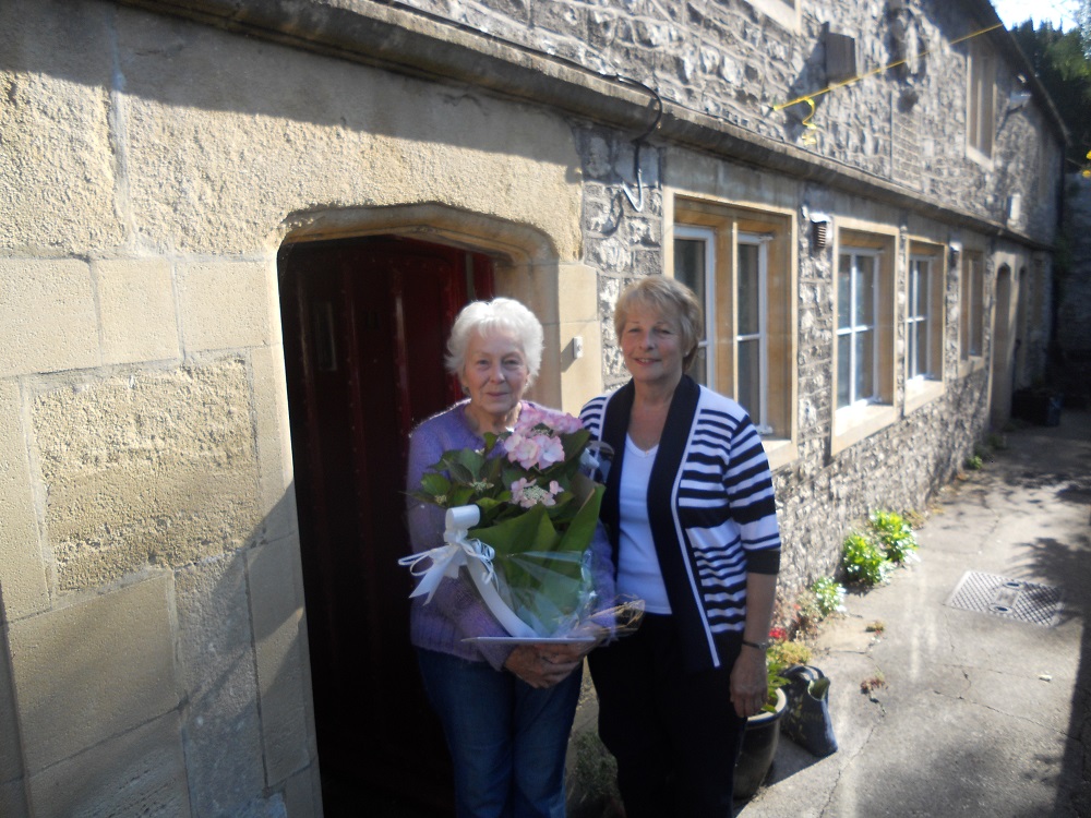 Thelma Reeves, Shepton Mallet Almshouses’ longest resident was presented with a gift from Warden Judy Dear. Thelma has been at the Almshouses for over 14 years but is now going to live near her family in Street. Judy has visited Thelma almost daily and said, “I will miss her very much and have enjoyed swopping stories and picking up gardening tips. She is a lovely Lady.”