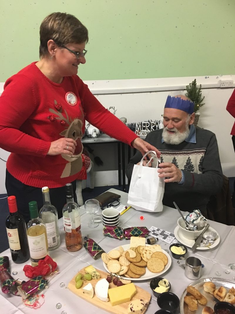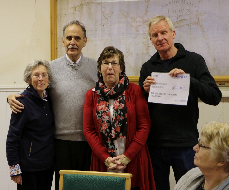 The Residents and Guests were served high tea by the Trustees and were welcomed by Chairman, Jeff Curtis. This year Shepton Mallet’s “Knit and Chat” group made the Almshouses their Charity of the Year and a cheque for £1250.00 was presented by Eileen and Kathy to Treasurer Graham Cockill towards the cost of the continued refurbishment of their ancient buildings. They were warmly thanked for this generous donation, the fruit of much hard work throughout the year. Mr. & Mrs Kennedy also gave a private donation. and, on behalf of Tesco, Debbie Towner invited the Residents to a Tea at Tesco’s the following week.