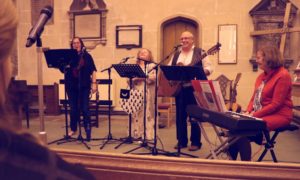 After welcome speeches by Rev Jonathan Hunter Dunn and Chairman Jeff Curtis, the incomparable Janet Saxon gave us a varied programme of Music and Song and then led the enhanced Church Choir, Later one of the guests remarked: “It was a glorious, partly divine, evening and I had one of the happiest hours of my week – an uplifting ending”. Following the intermission Norman, Ingrid, Shayla and Ros: “Hiraeth” weaved their folk songs through a capella, popular and comedy to uplifting melodies contrived by Norman Cumming; what a show!