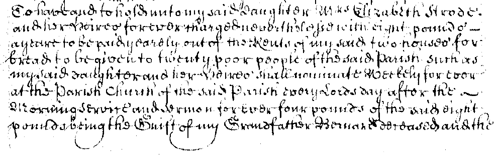 20th March 1712 Elizabeth Strode, in her will, gave more money to augment the allowance of the four poor men. She also left more money to pay for the further distribution of bread to the poor.